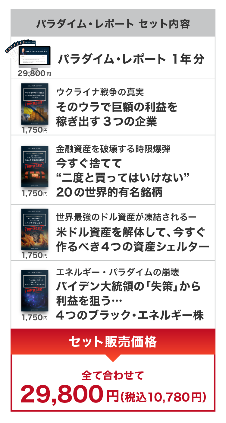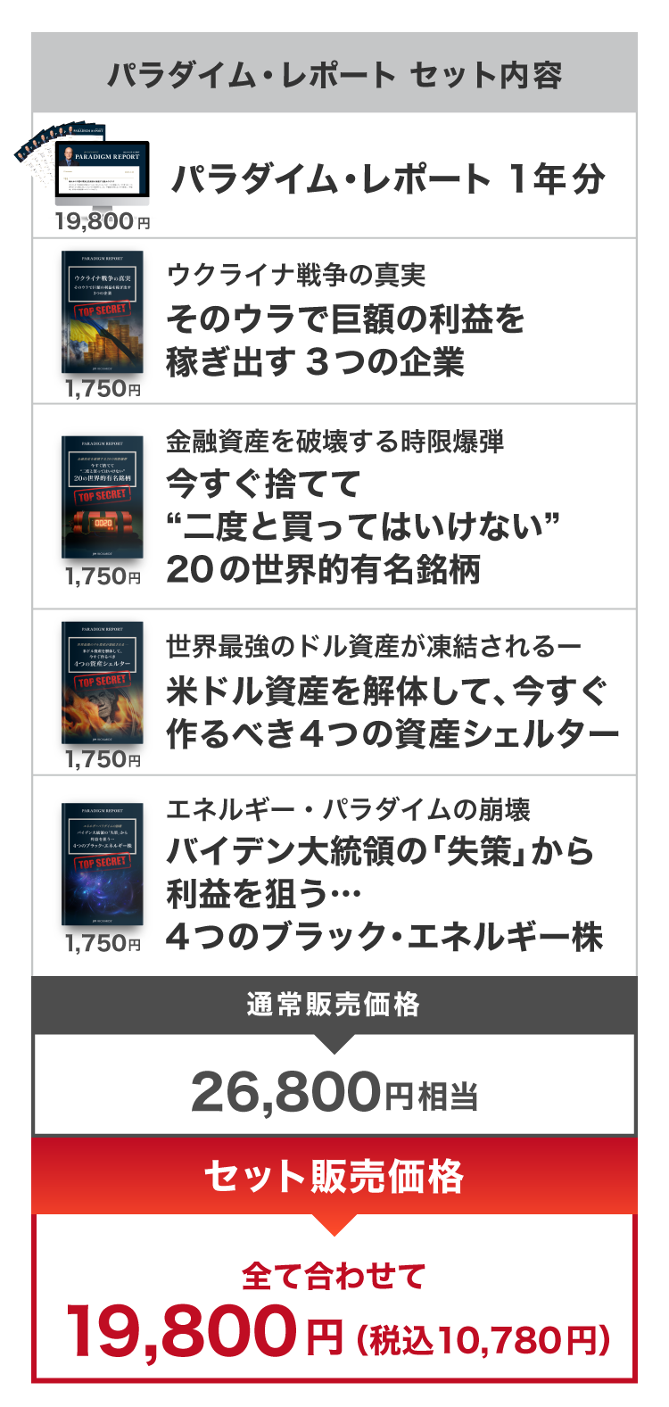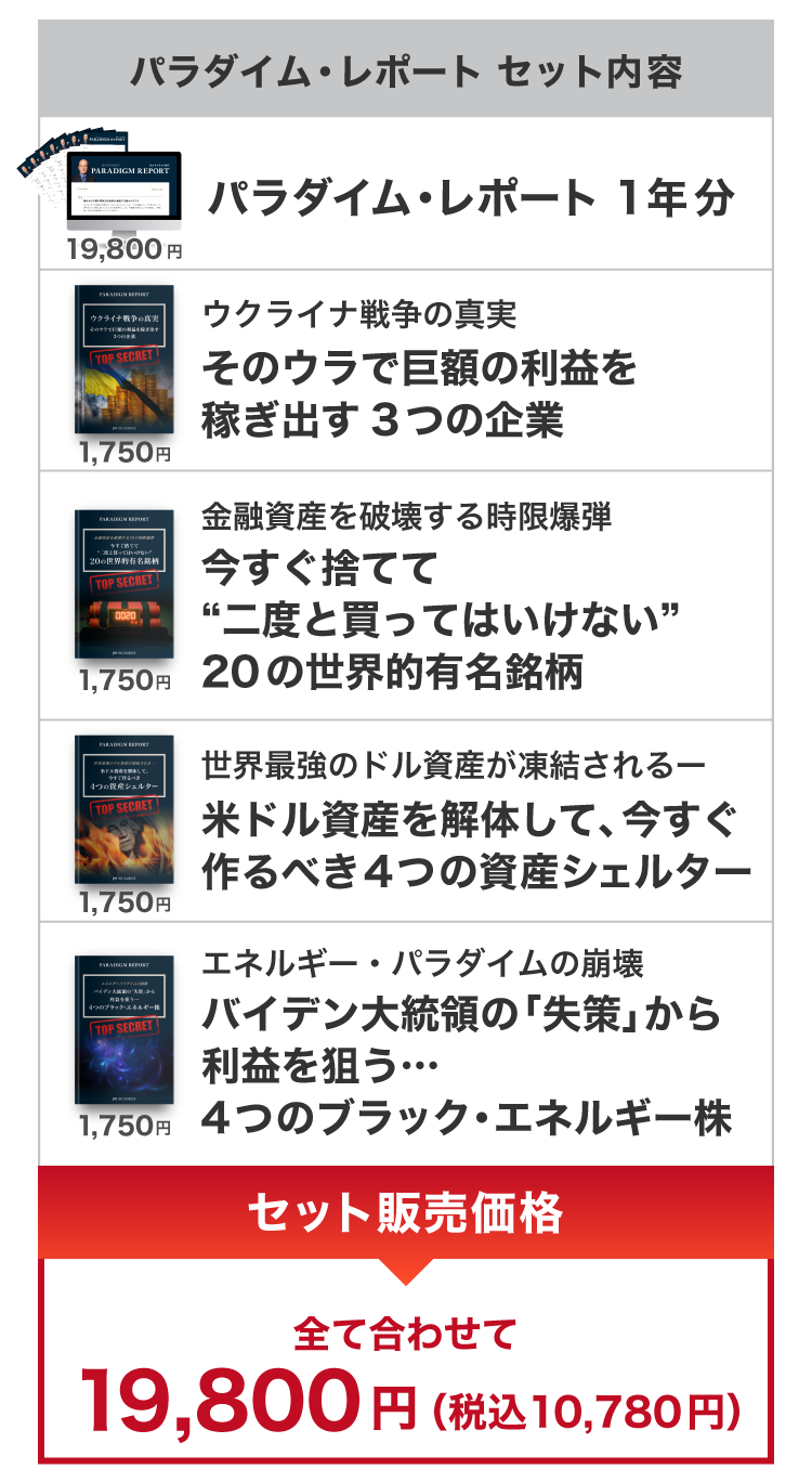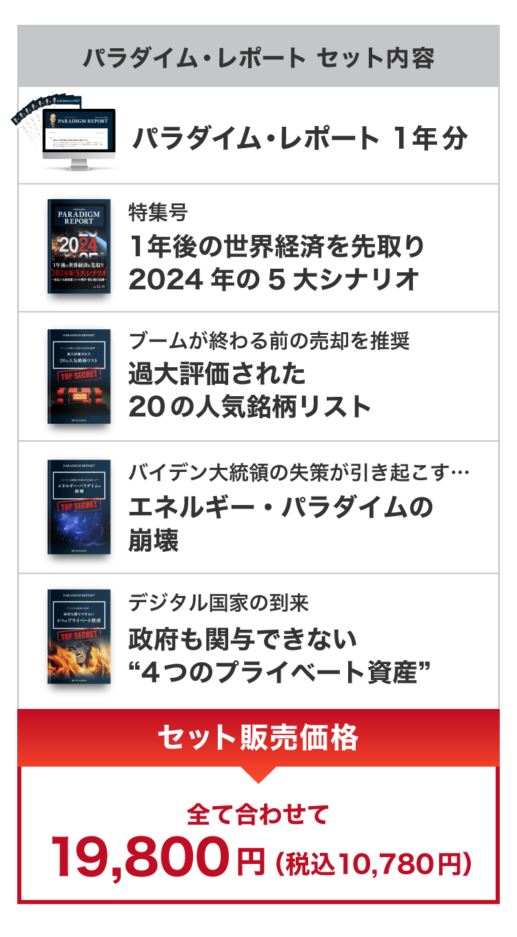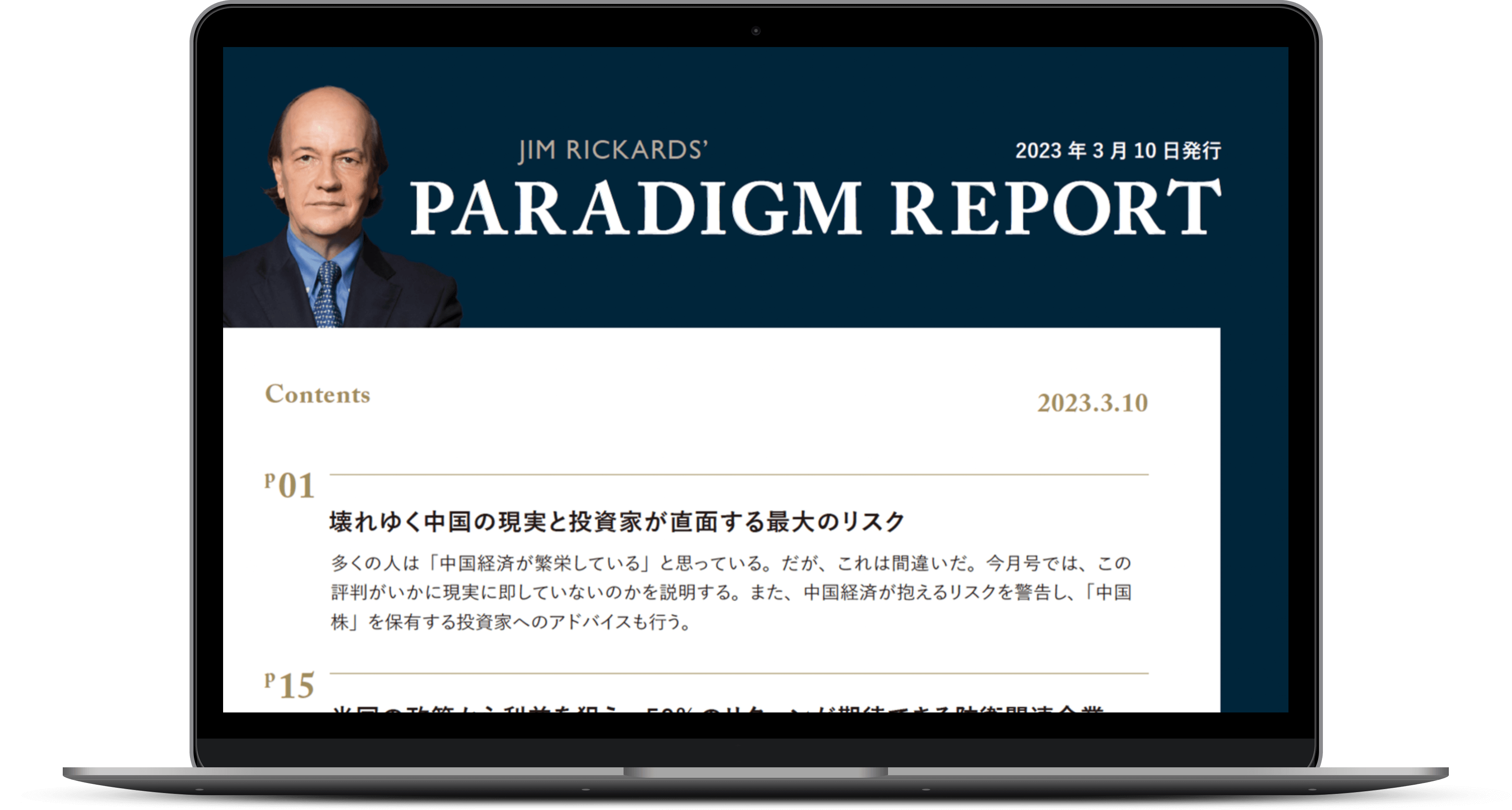 ジム・リカーズ氏が世界中のあらゆるニュースから、その時最も注目すべき政治・経済動向を1つの“ビッグ・トピック”としてまとめ上げて解説した月刊誌です。